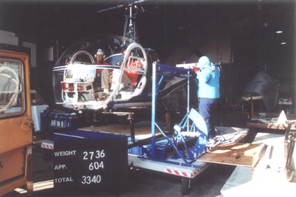 Шри Чинмой приподнимает вертолет с двумя пилотами на модифицированном тренажере для поднятия тяжестей икроножными мышцами из положения стоя. Общий вес поднятия составляет 3340 фунтов.